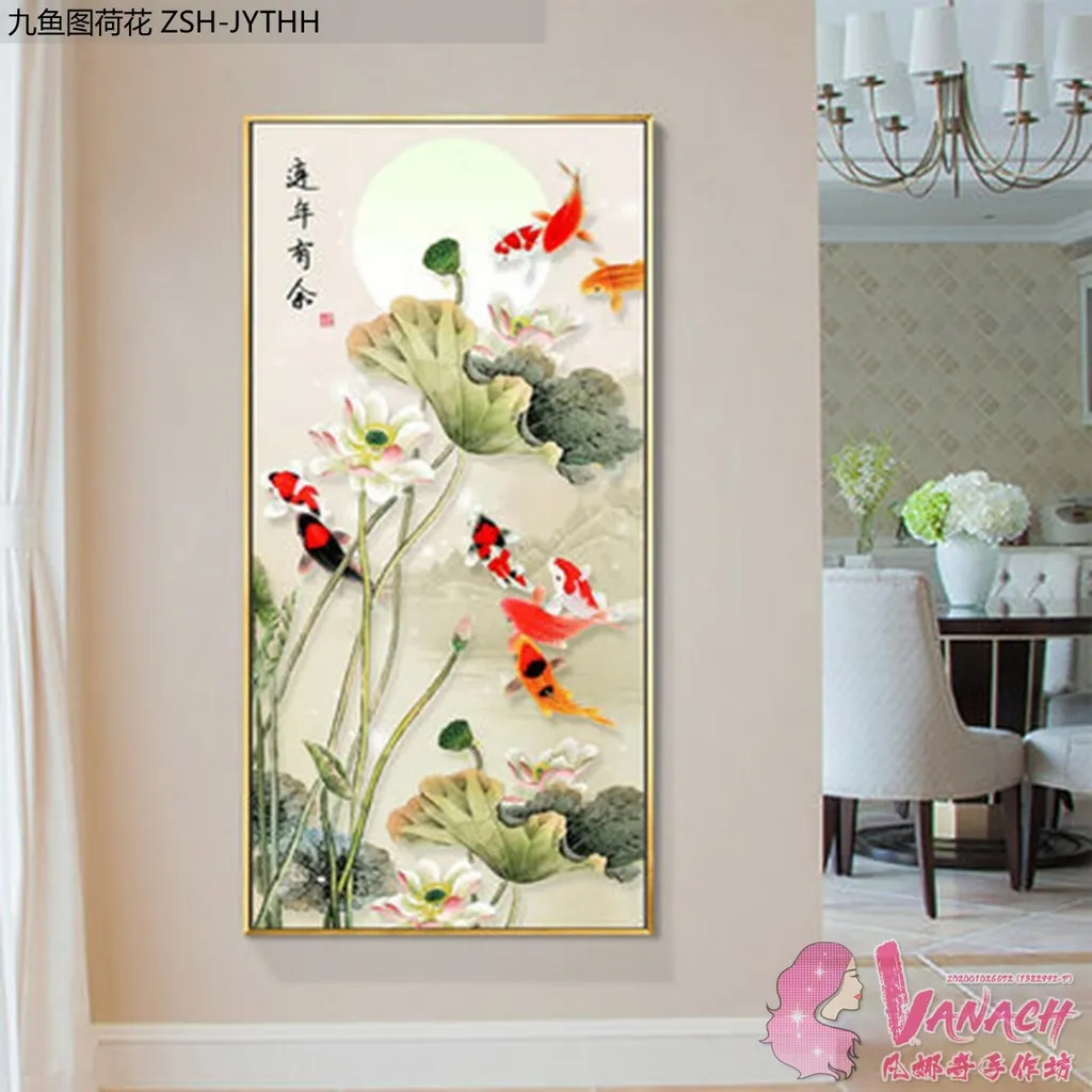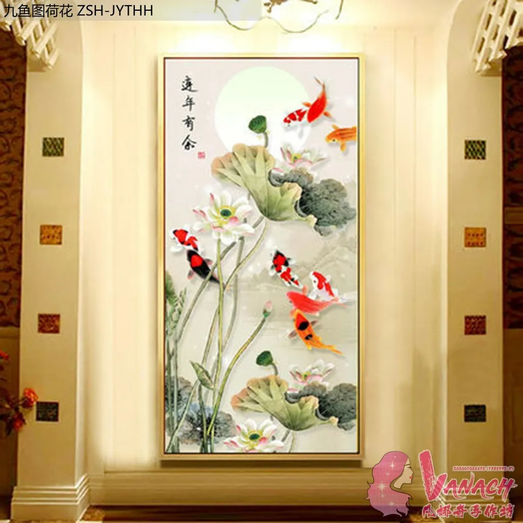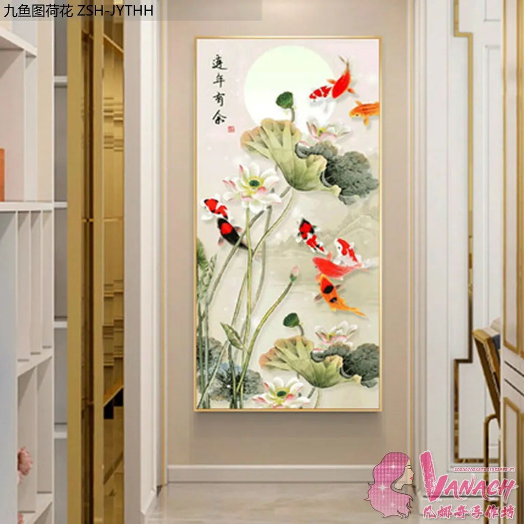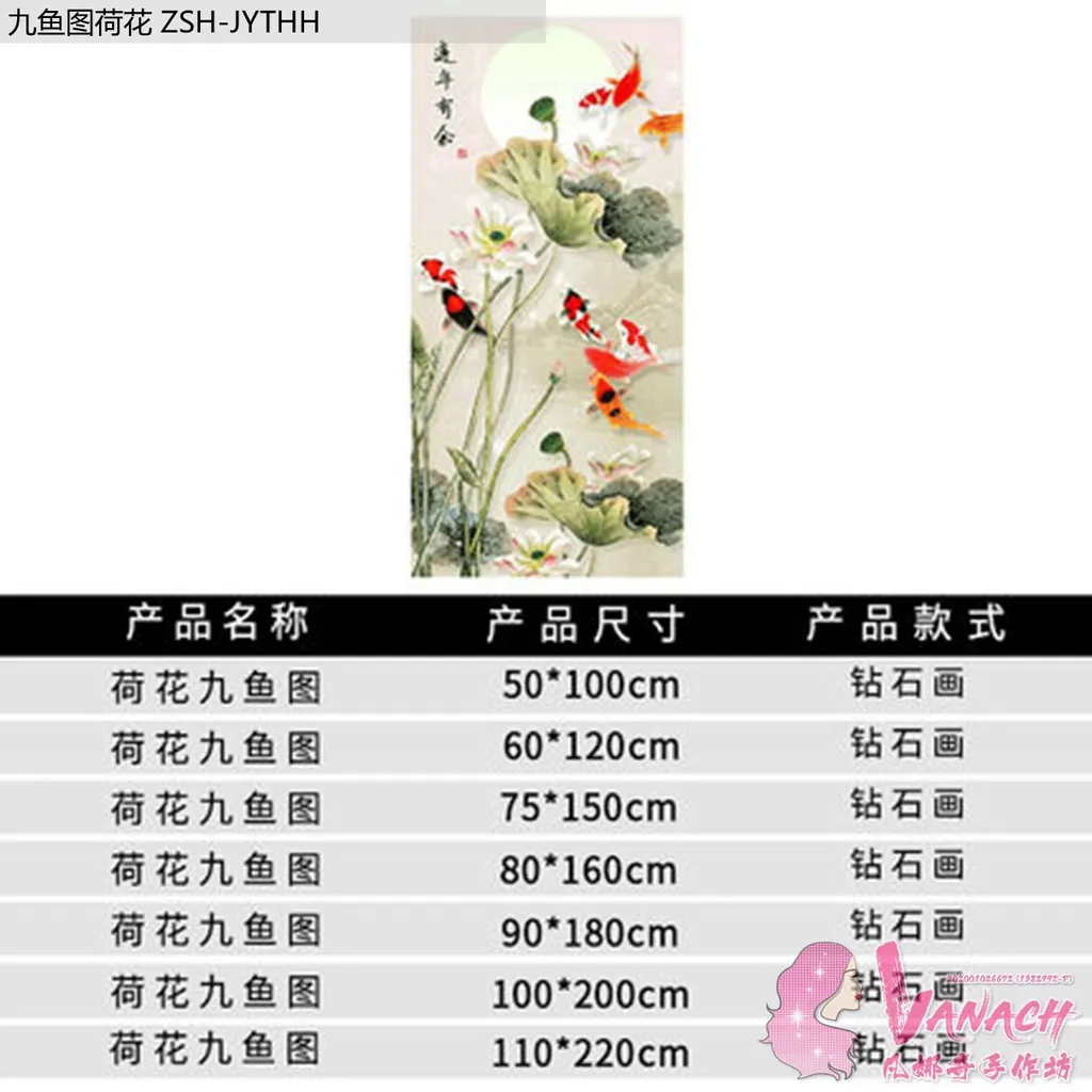 {钻石画}VANACH DIY 动物图案系列 2021新款钻石画满钻客厅竖版九鱼图年年有余鱼十字绣荷花点贴2020