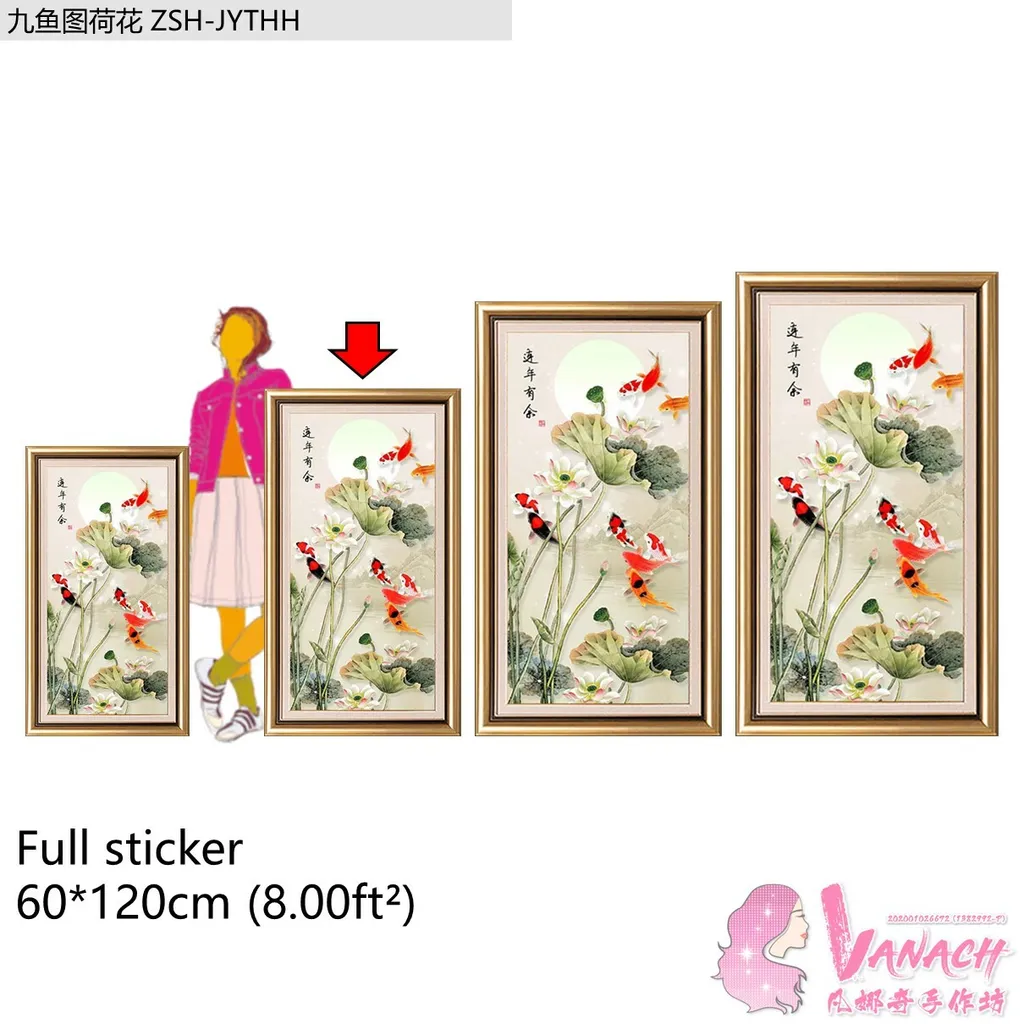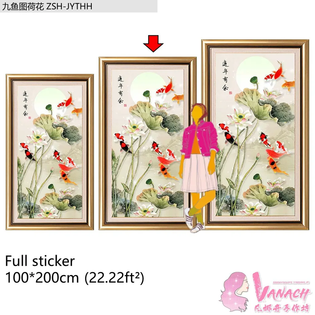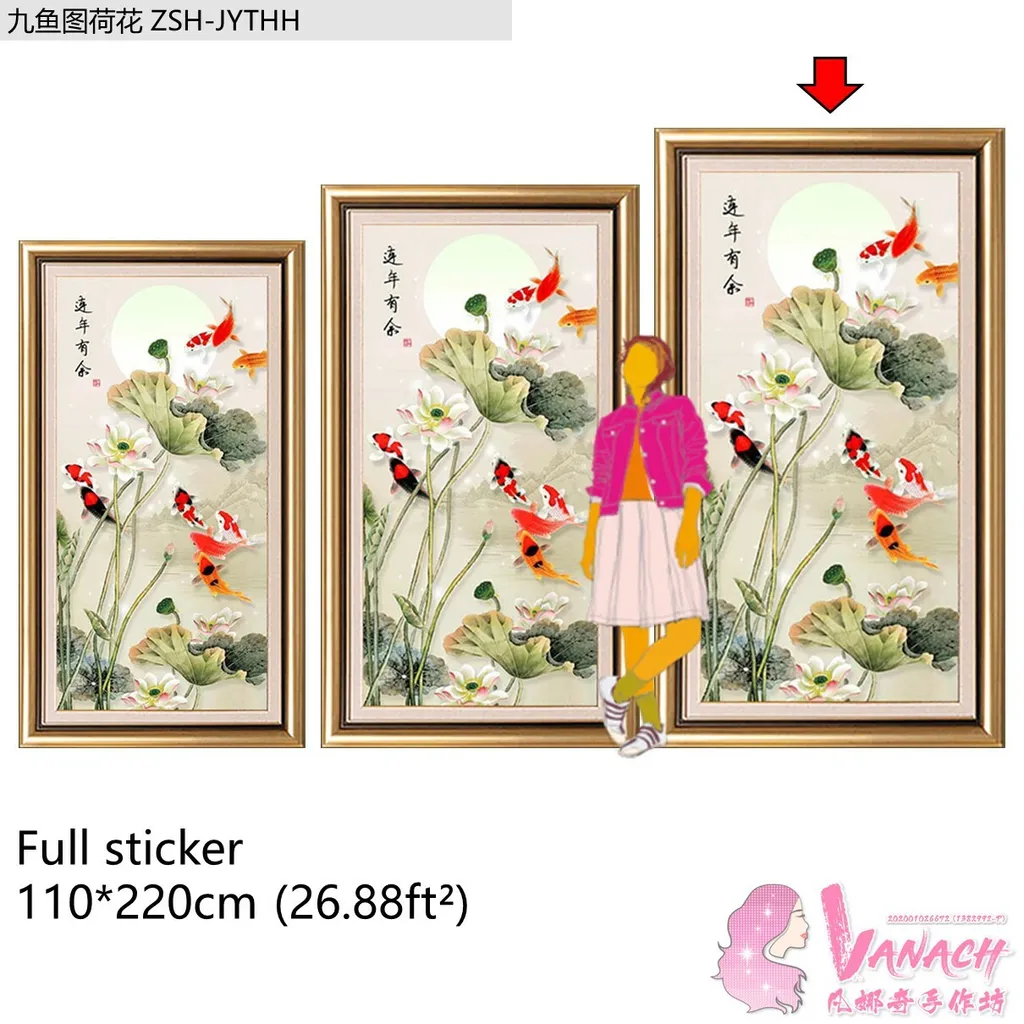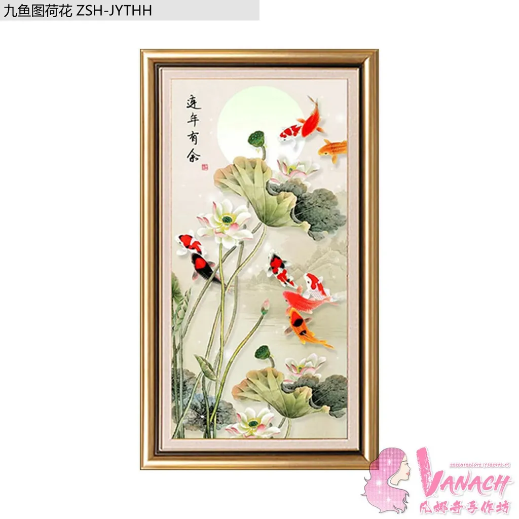 {钻石画}VANACH DIY 动物图案系列 2021新款钻石画满钻客厅竖版九鱼图年年有余鱼十字绣荷花点贴2020