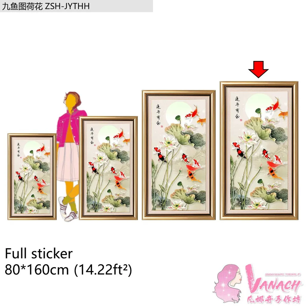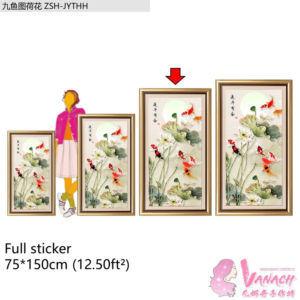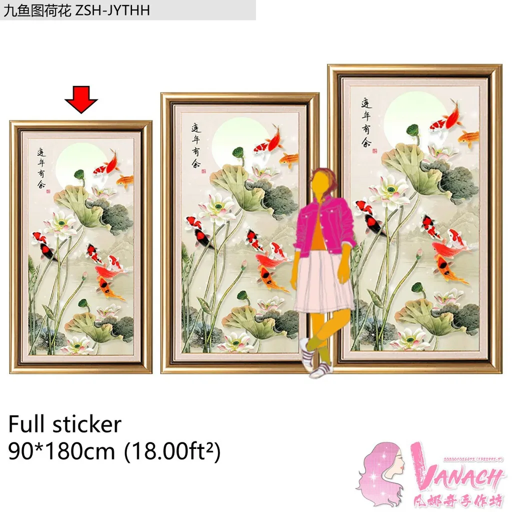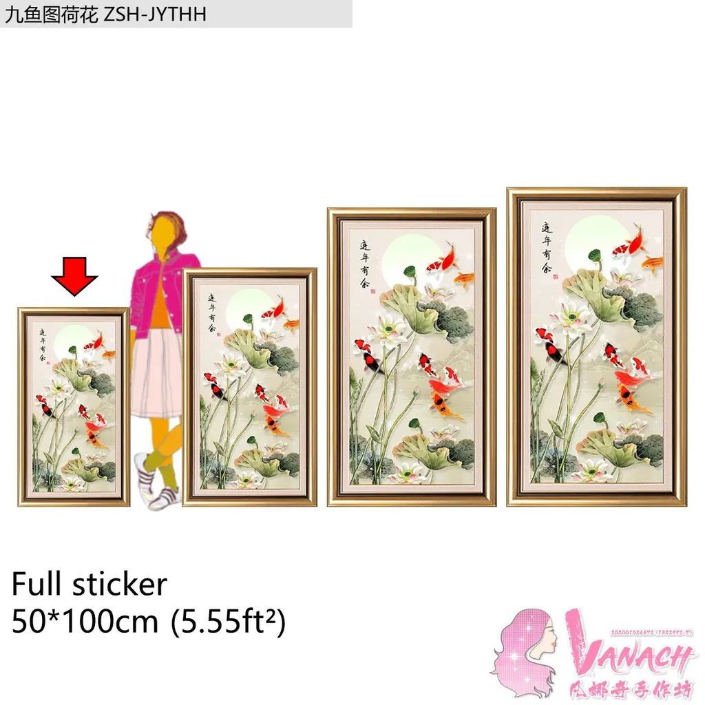 {钻石画}VANACH DIY 动物图案系列 2021新款钻石画满钻客厅竖版九鱼图年年有余鱼十字绣荷花点贴2020